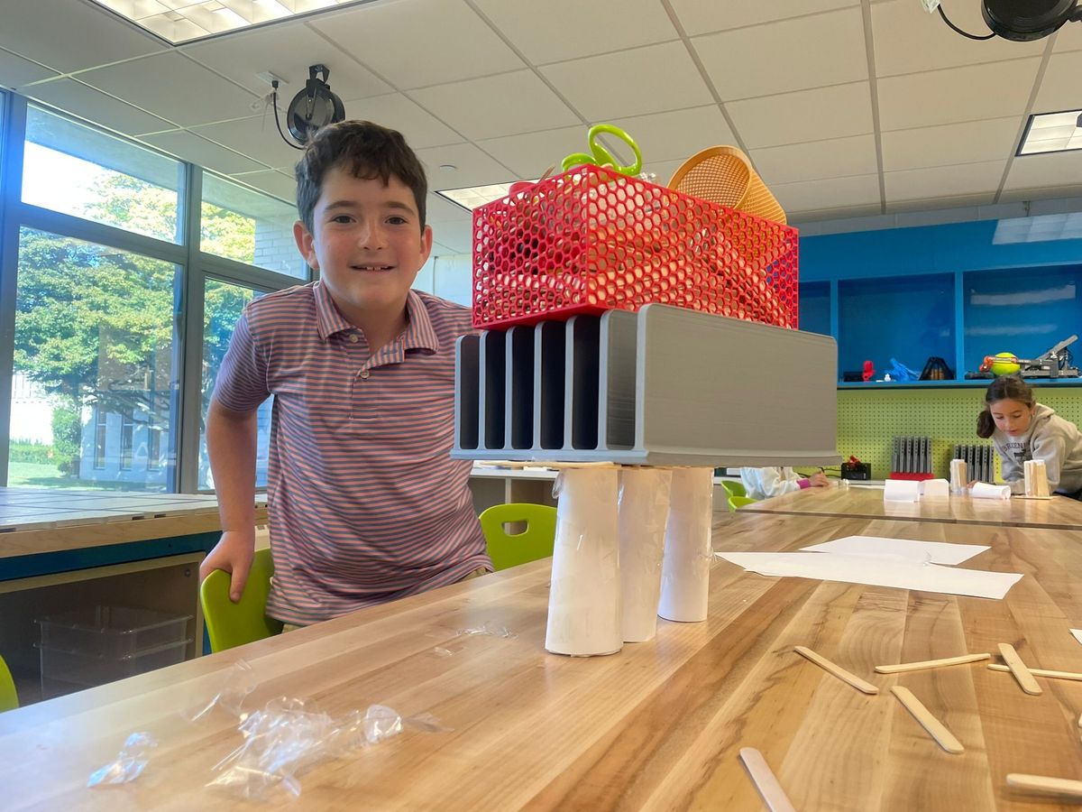 Located in Wolfson Hall, the Innovation Lab features a Glowforge laser cutter, five 3D printers, and a dedicated robotics corner with a full competition table. Each week, students from kindergarten through eighth grade dive into engineering and computer science—designing bridges and testing their strength, creating personal websites, exploring CAD modeling, and bringing ideas to life through 3D printing.